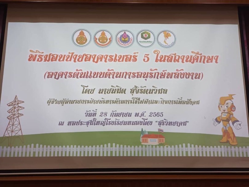 วันที่ 28 กันยายน 2565 การไฟฟ้าฝ่ายผลิตแห่งประเทศไทย นำโดย นายนิมิตร สุจิรัตนวิมล (ผู้ช่วยผู้อำนวยการฝ่ายบริหารด้านการใช้ไฟฟ้าและกิจการเพื่อสังคม) ให้เกียรติเป็นประธานพิธีมอบป้ายอาคารเบอร์ 5 ในสถานศึกษา ให้กับโรงเรียนหนองโตง"สุรวิทยาคม" จังหวัดสุรินทร์ โดยมี นายคำปุ่น บุญเชิญ ผู้อำนวยการเขตพื้นที่การศึกษาประถมศึกษาสุรินทร์ เขต1 เป็นผู้รับมอบ สืบเนื่องจากโรงเรียนหนองโตง "สุรวิทยาคม" ได้พัฒนาอาคารเรียน และนำหลักการด้านการอนุรักษ์พลังงานและสิ่งแวดล้อมบูรณาการเข้ากับการดำเนินงานทุกระบบภายในโรงเรียน พร้อมทั้งให้ความรู้กับนักเรียนเรื่องการอนุรักษ์พลังงานและสิ่งแวดล้อม จนผ่านเกณฑ์มาตรฐานอาคารเบอร์ 5 ในสถานศึกษา ทางกฟผ. จึงได้มอบป้ายอาคารเบอร์ 5 ในสถานศึกษาเพื่อเป็นสัญลักษณ์แสดงถึงการเป็นโรงเรียนต้นแบบด้านการอนุรักษ์พลังงานและสิ่งแวดล้อม