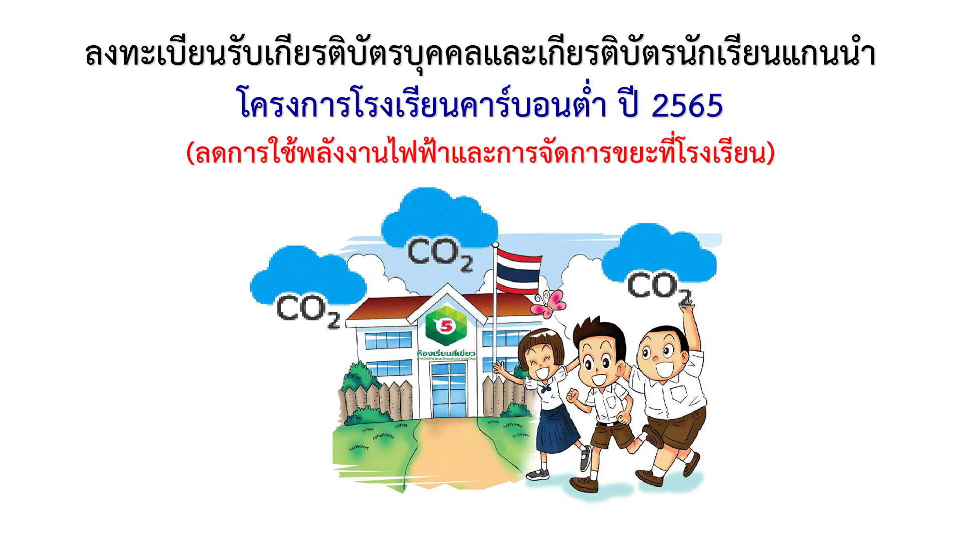 ลงทะเบียนรับเกียรติบัตรบุคคลและเกียรติบัตรนักเรียนแกนนำ โรงเรียนคาร์บอนต่ำ (ลดการใช้พลังงานไฟฟ้าและการจัดการขยะที่โรงเรียน) ปี 2565