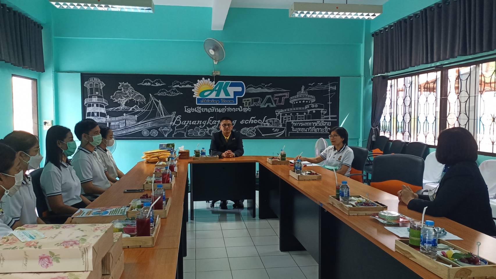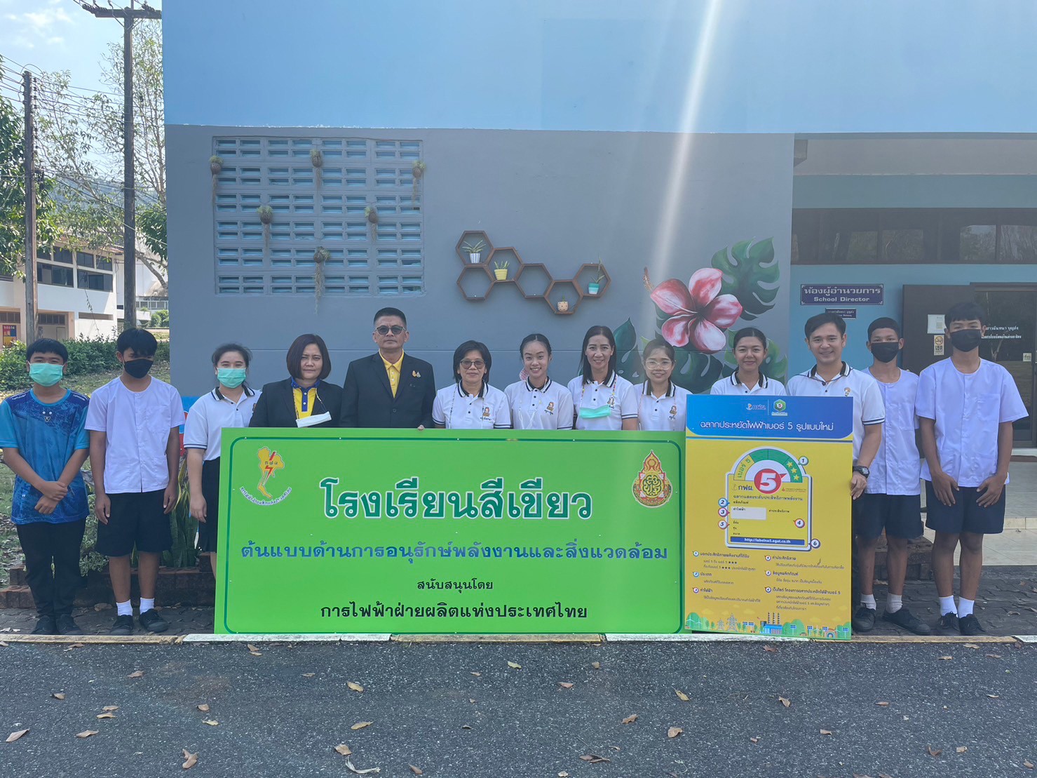 ทีมงานห้องเรียนสีเขียวโดยการไฟฟ้าฝ่ายผลิต มอบป้ายโรงเรียนสีเขียว และชี้แจงกิจกรรมห้องเรียนสีเขียว ปี 2566 ที่ โรงเรียนบ้านอ่างกระป่อง