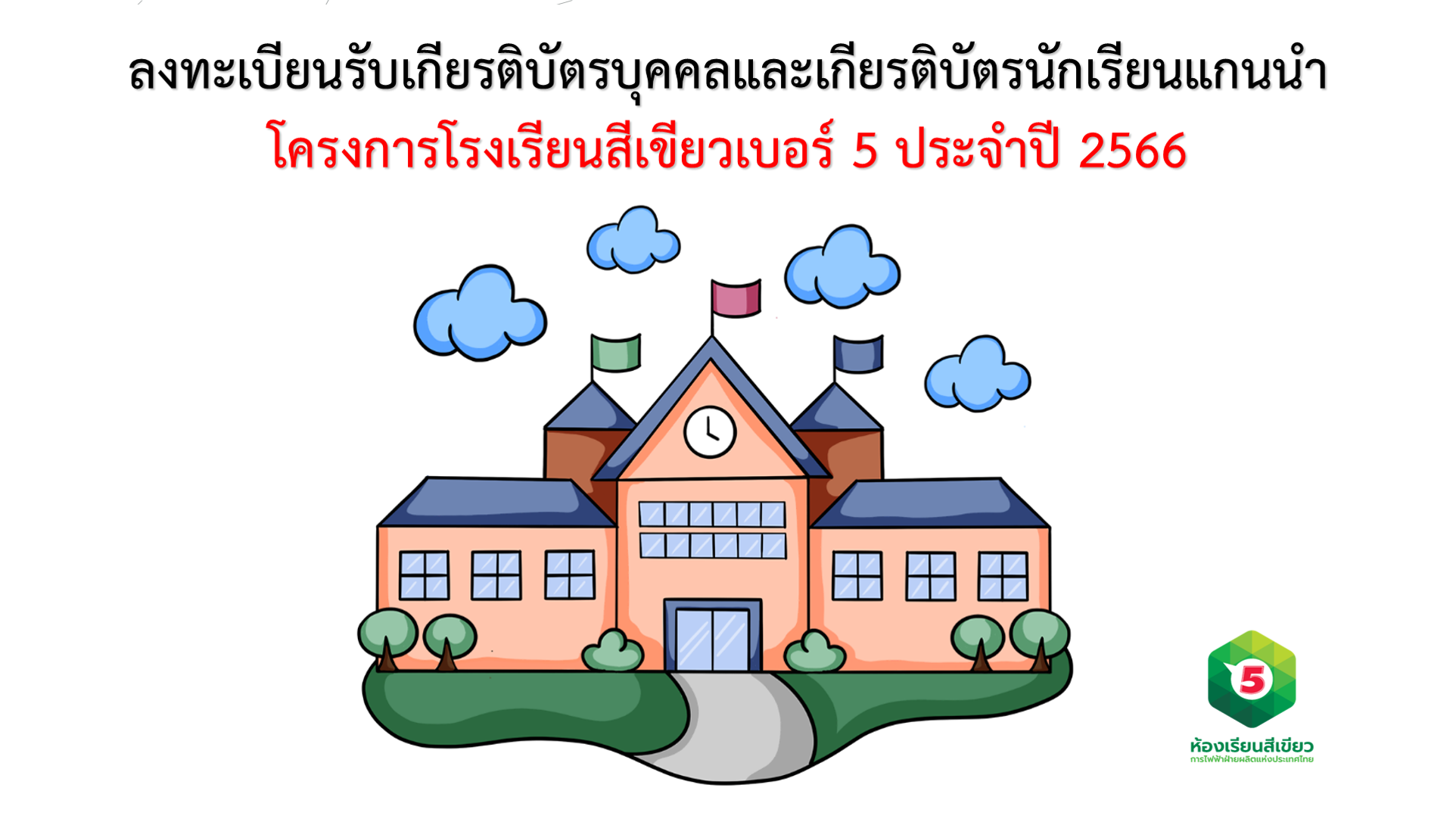 ลงทะเบียนรับเกียรติบัตรบุคคลและเกียรติบัตรนักเรียนแกนนำ โรงเรียนสีเขียวเบอร์ 5 ประจำปี 2566