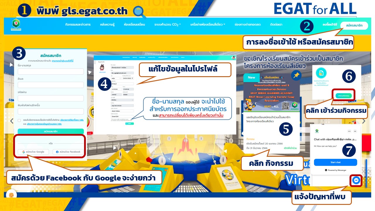 3.สมัครสมาชิกใน Website https://gls.egat.co.th/register (แก้ไขข้อมูลในโปรไฟล์ให้เรียบร้อย เพื่อรับเกียรติบัตร)