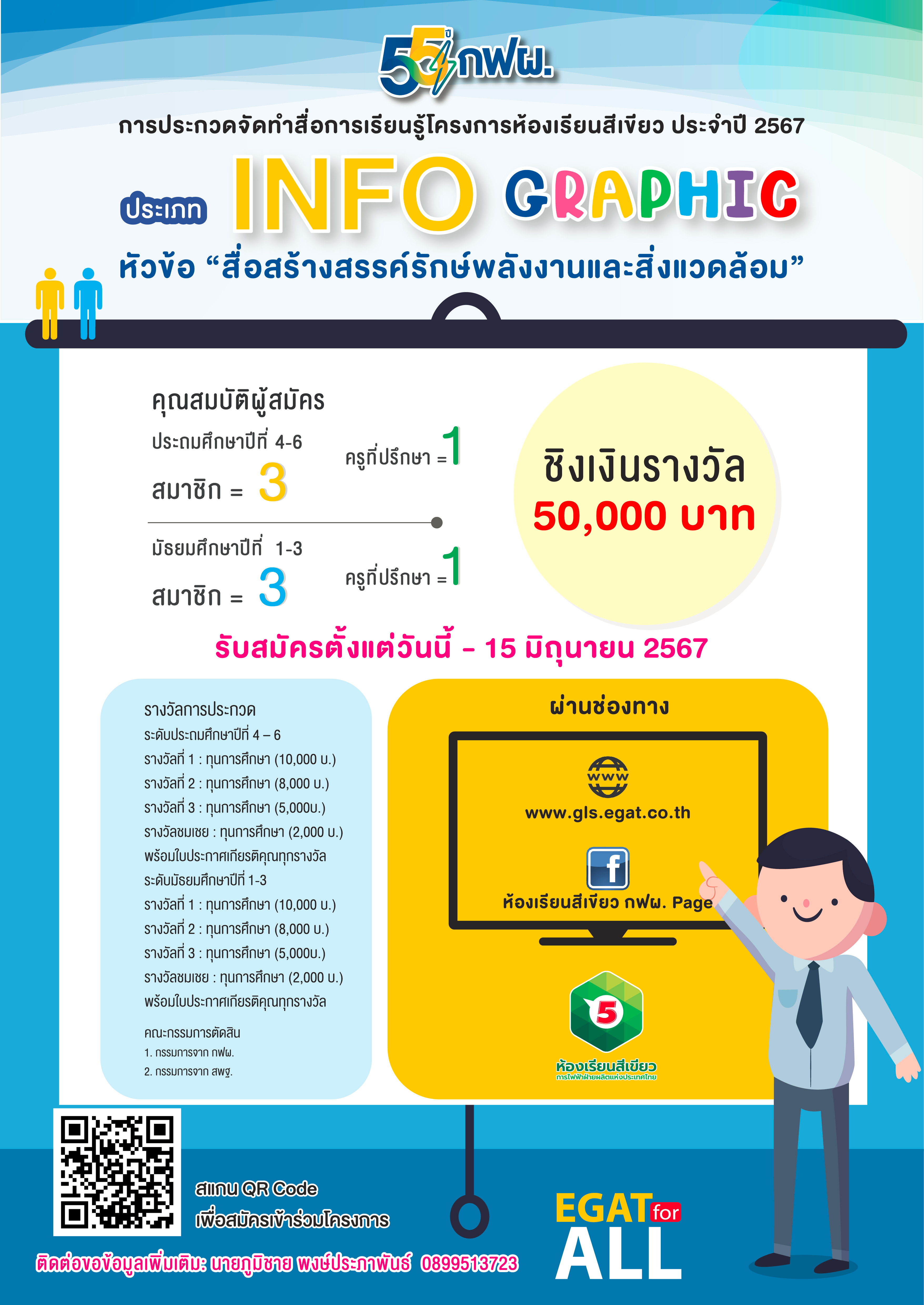 3.กดเข้าร่วมกิจกรรมกิจกรรมการประกวดจัดทำสื่อการเรียนรู้โครงการห้องเรียนสีเขียว ประจำปี 2567 ประเภท Infographic ที่ https://gls.egat.co.th/activities/409