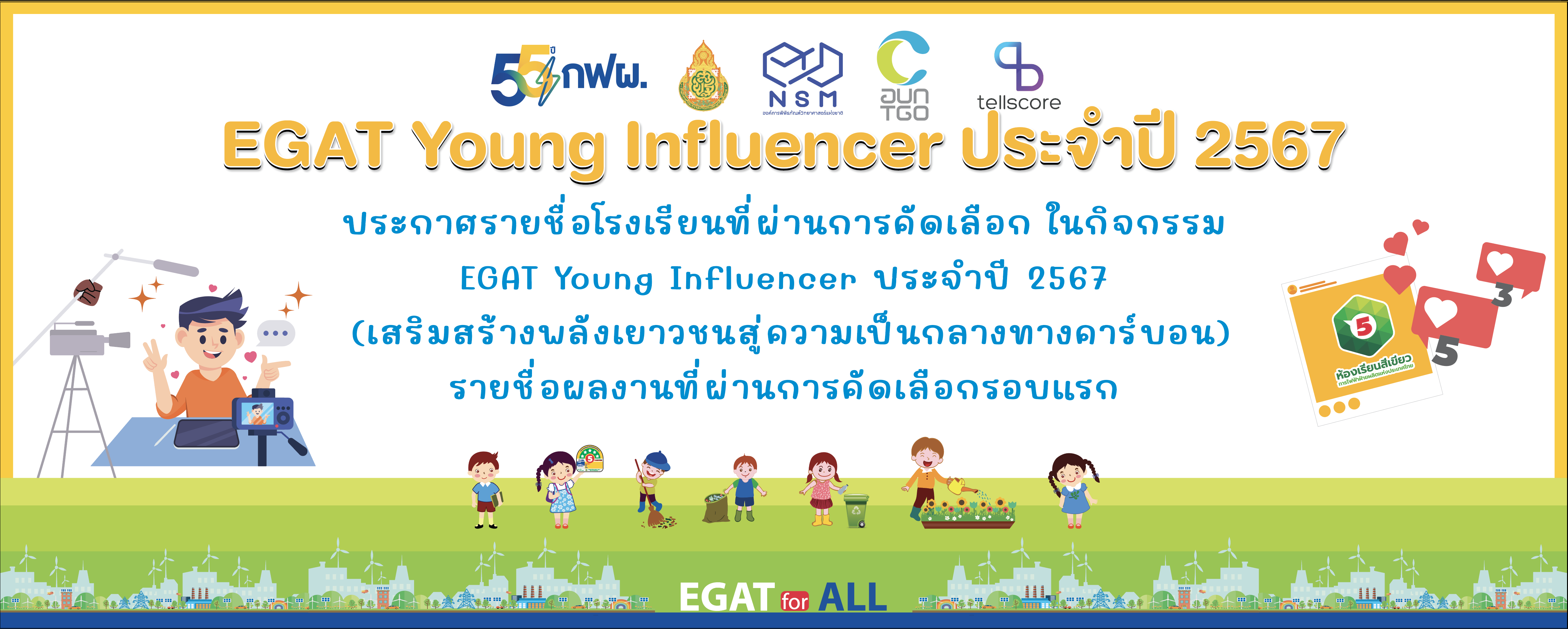 ประกาศรายชื่อโรงเรียนที่ผ่านการคัดเลือก กิจกรรม EGAT Young Influencer ประจำปี 2567