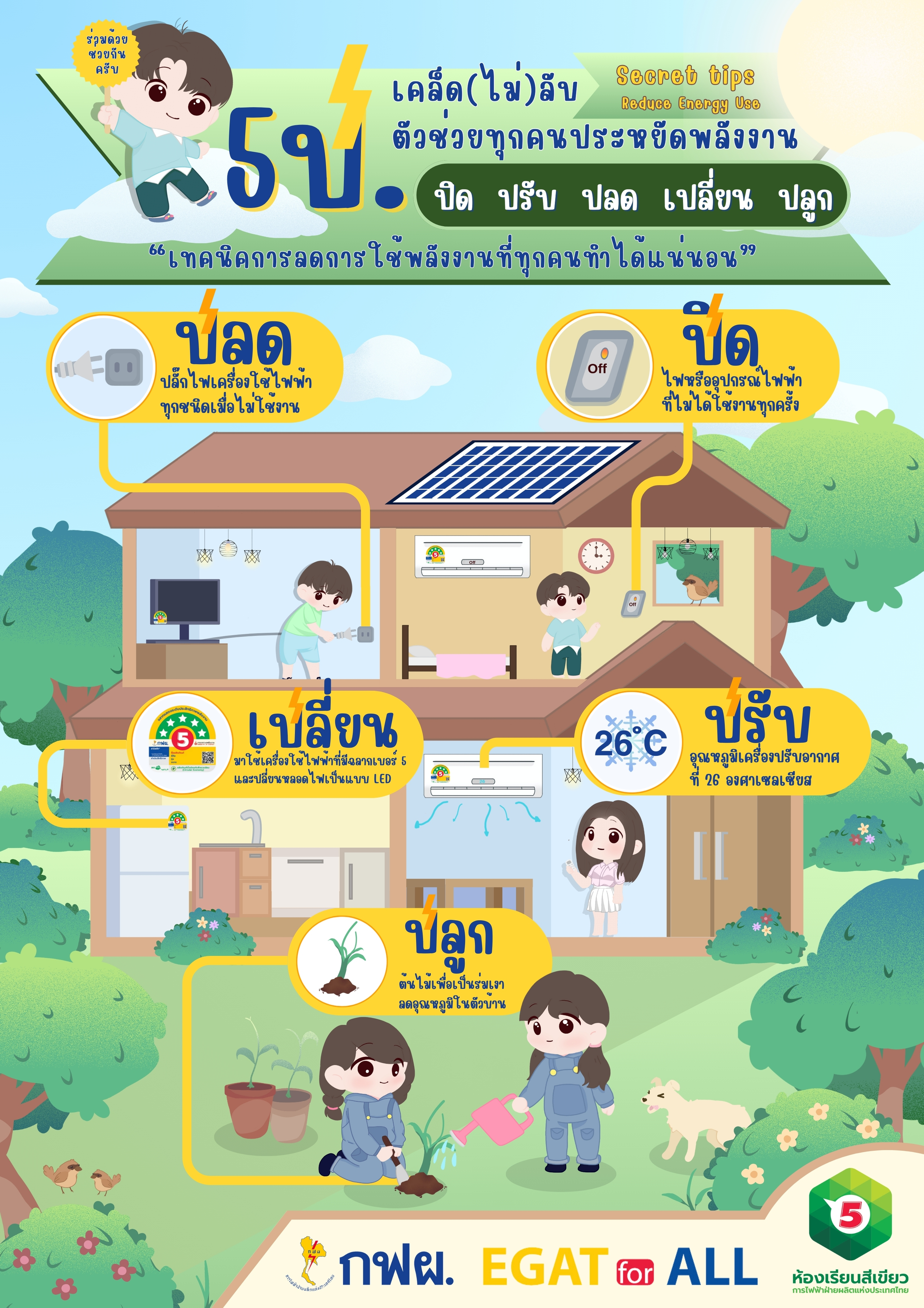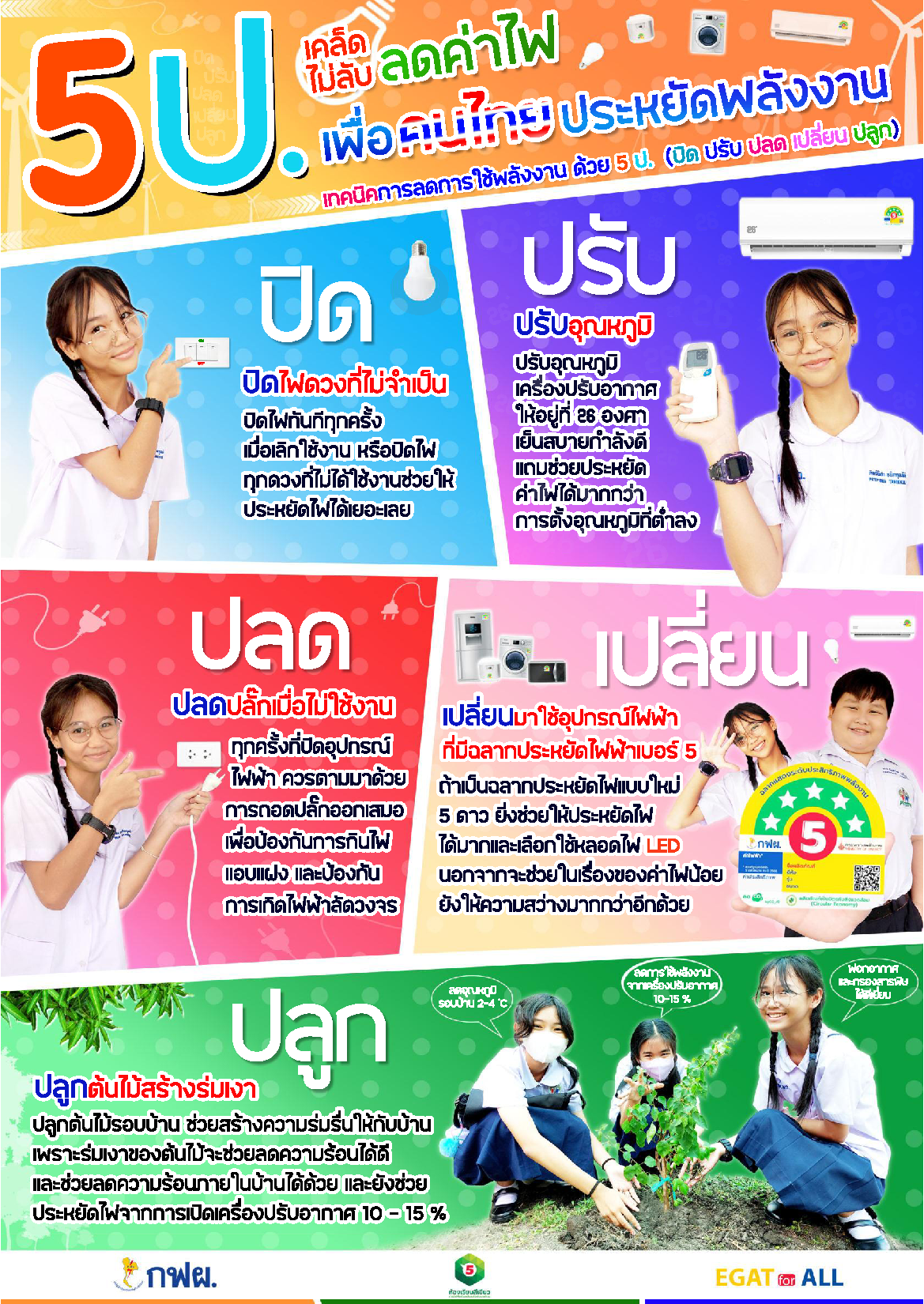 ชื่อผลงานภาษาไทย : "5 ป. เคล็ดไม่ลับลดค่าไฟ เพื่อคนไทยประหยัดพลังงาน"