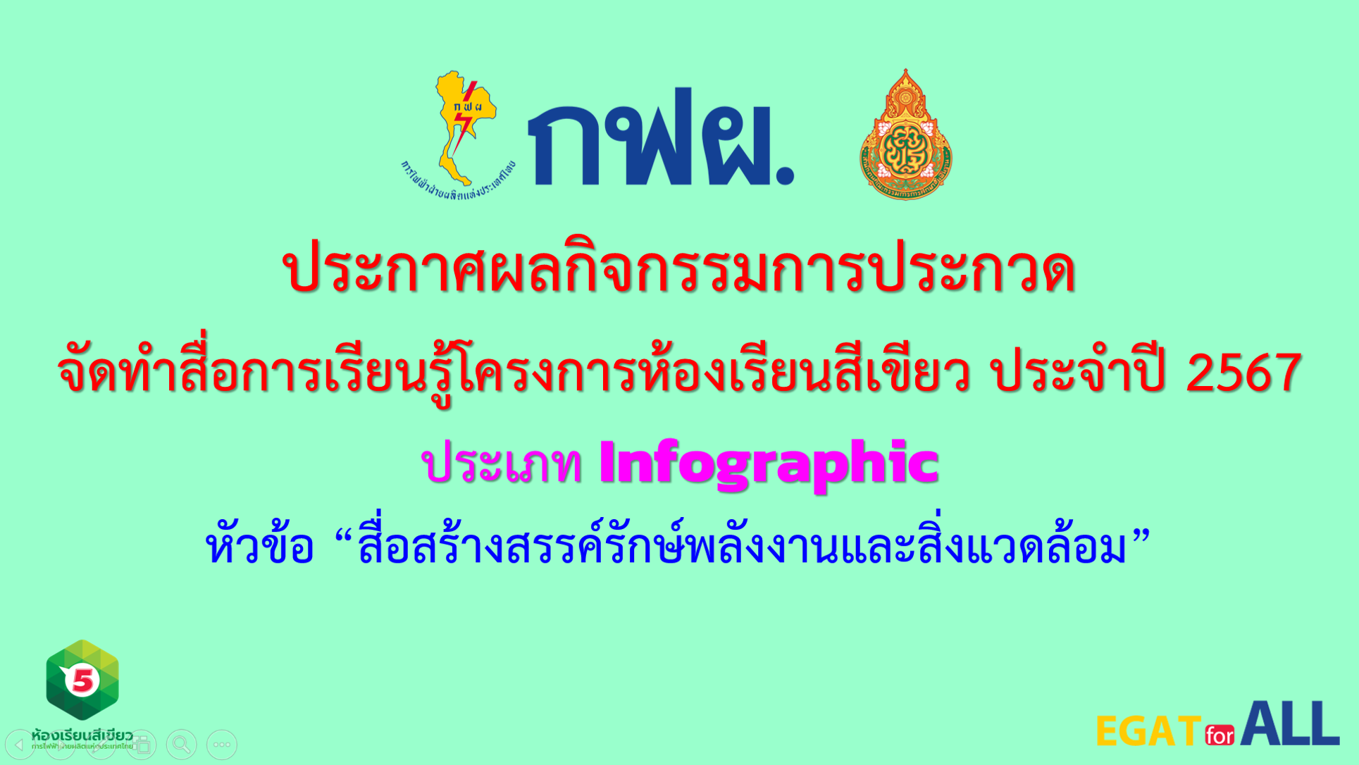 ประกาศผลกิจกรรมการประกวดจัดทำสื่อการเรียนรู้โครงการห้องเรียนสีเขียว ประจำปี 2567 ประเภท Infographic
