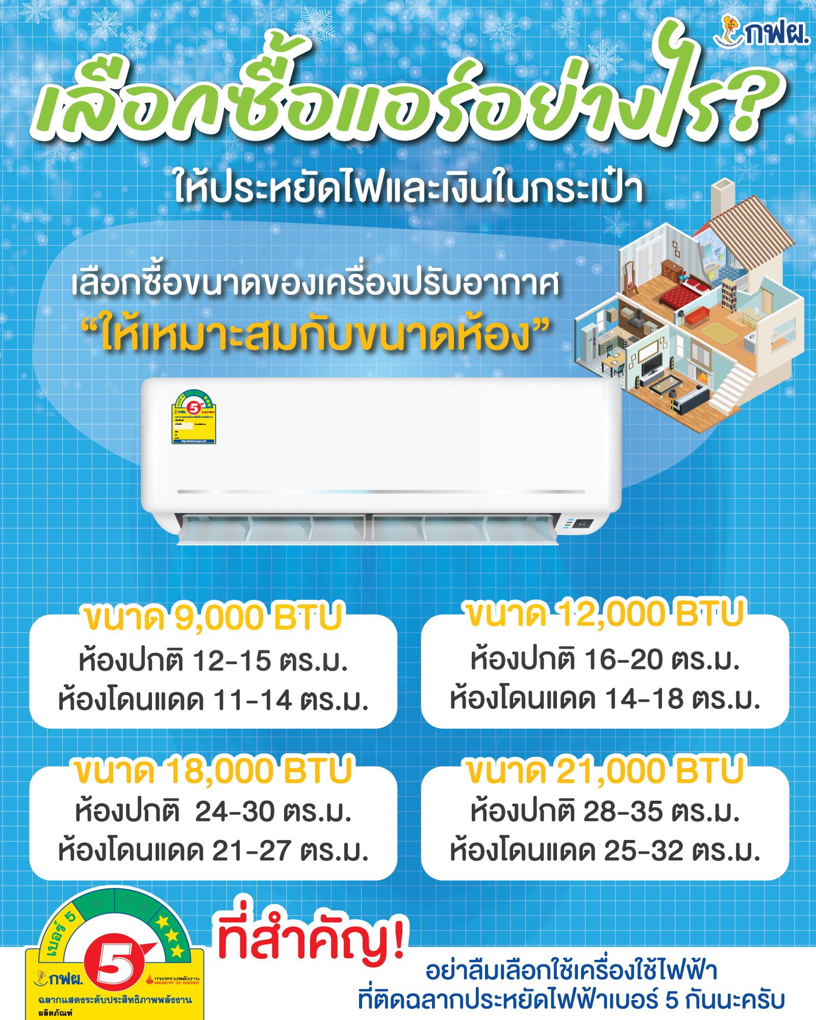 #เครื่องปรับอากาศ #BTU #ฉลากประหยัดไฟฟ้าเบอร์5 #วิธีประหยัดไฟฟ้า #ไฟฟ้า #Electricity #กฟผ #EGAT #EGATforALL #SaveEnergyforALL