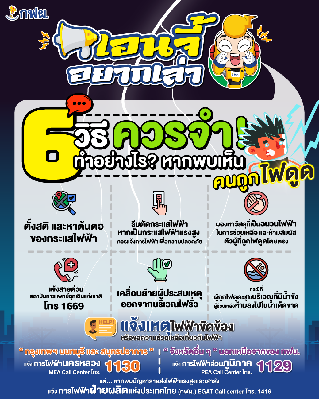 📢 ENGY อยากเล่า ⚡ 🔌 6 วิธีควรจำ ทำอย่างไรหากพบเห็นคนถูกไฟดูด 💭